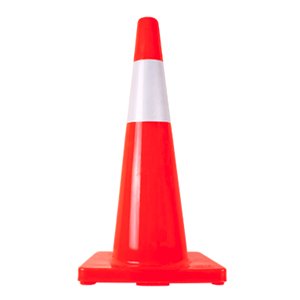 Cono de seguridad con diseño piramidal para una mayor resistencia al viento, tratamiento contra rayos UV para una mayor durabilidad, de 45 y 71 centímetros con/sin reflejante.
