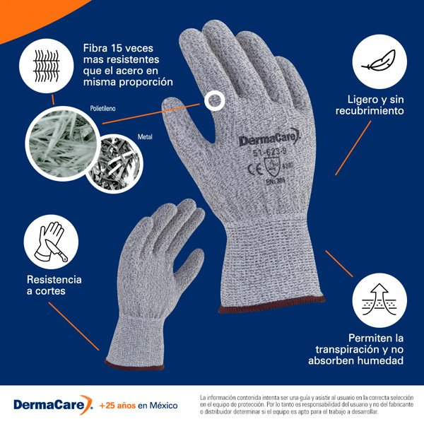 GUANTE ANTICORTE DE POLIETILENO CON FIBRA DE VIDRO Y NYLON